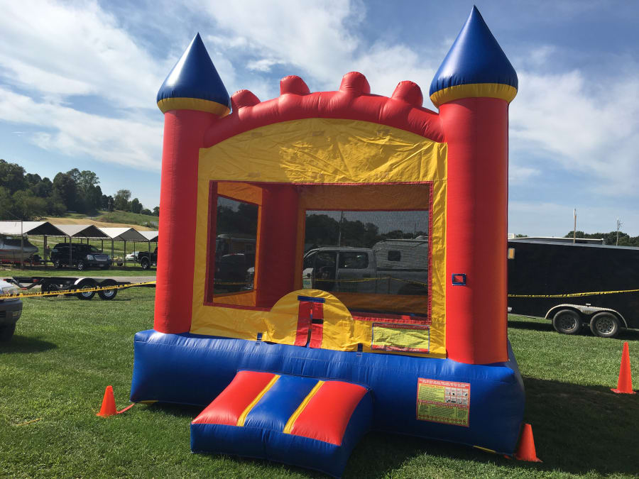 Our bounce castle rental features vibrant colors and 160 square feet of bounce area. This inflatable rental will accommodate up to 5 kids at a time with a total weight limit of 150 pounds per kid. Fun for all ages!