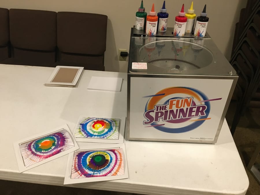 The Fun spinner creates colorful fun for everyone! The machine rental includes enough cards and frames for up to 50 people.