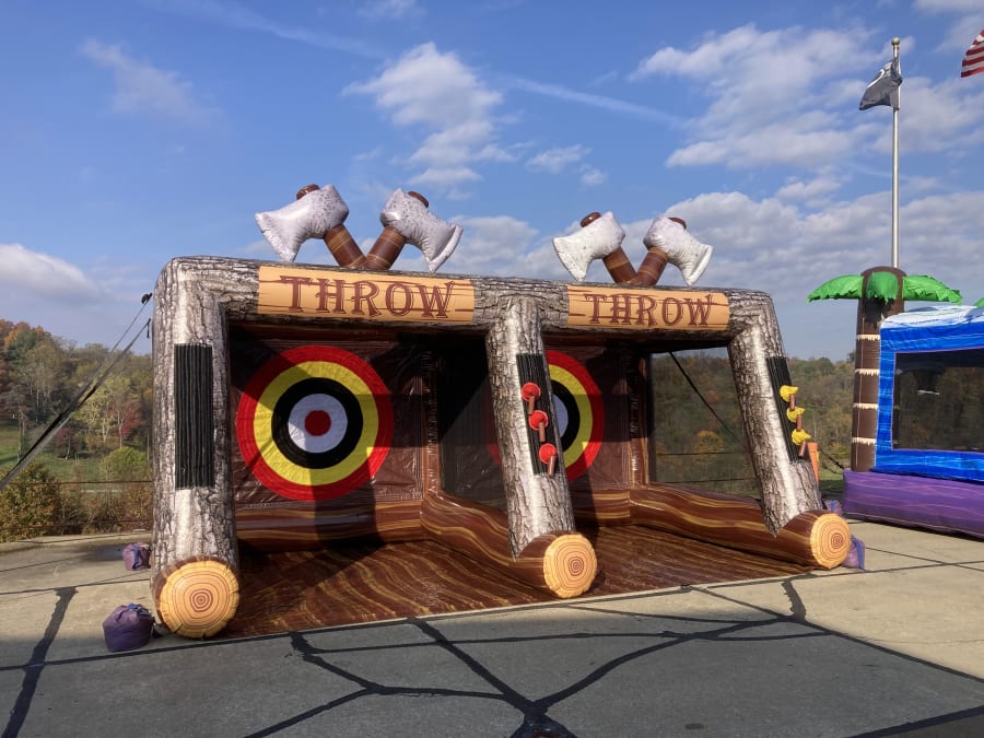 Are you looking to add excitement to your event with the best inflatable game rentals in Parkersburg, Vienna, Williamstown, Mineral Wells, Belpre, Ravenswood, Ripley, Charleston, Clarksburg, Wheeling, Moundsville, Cambridge, and Athens? Look no further! Our Double Ax Throw is available for delivery across these areas, ensuring that wherever you are, you can bring the fun directly to your doorstep. Make your event unforgettable with our top-of-the-line rental services.