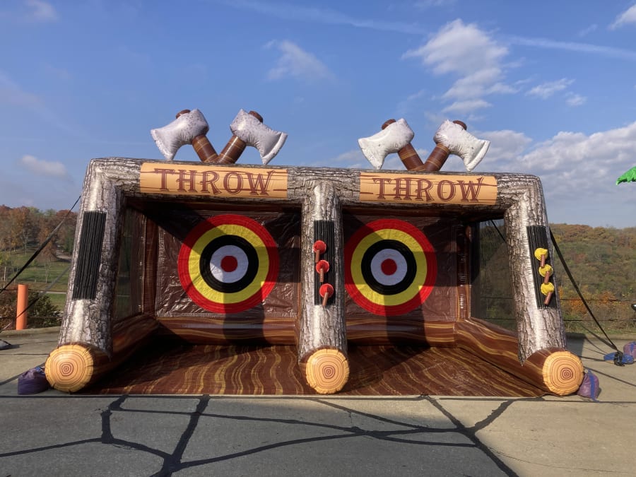 Are you looking to add excitement to your event with the best inflatable game rentals in Parkersburg, Vienna, Williamstown, Mineral Wells, Belpre, Ravenswood, Ripley, Charleston, Clarksburg, Wheeling, Moundsville, Cambridge, and Athens? Look no further! Our Double Ax Throw is available for delivery across these areas, ensuring that wherever you are, you can bring the fun directly to your doorstep. Make your event unforgettable with our top-of-the-line rental services.
