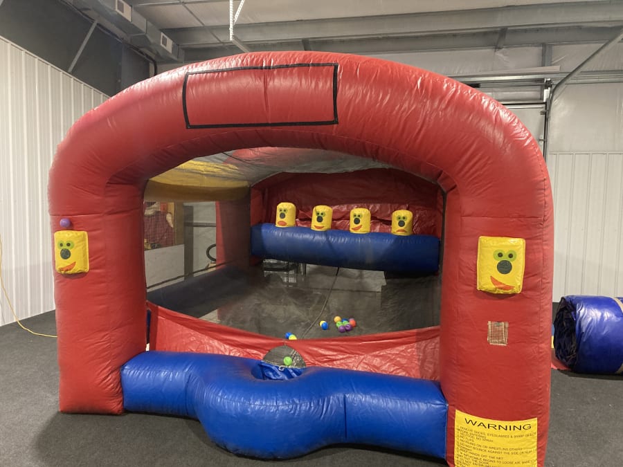 The balls float on air and the participants throw balls at them to knock them down.